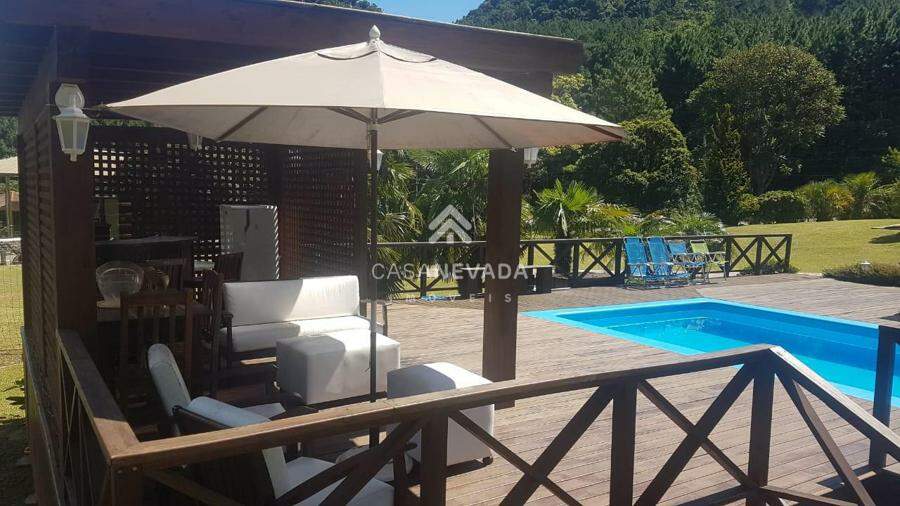 Sítio com Casa principal, 3 dormitórios, sala de jantar, cozinha integrada. Casa de hóspede com 2 dormitórios, sala de estar e jantar, cozinha. Lindo pomar e parreiral. Quiosque com piscina e jacuzzi, Campo de futebol. Lago com carpas. vertente natural 2 poços artesianos e galpão grande.